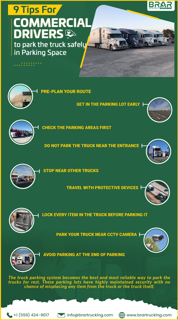 Considering this problem faced by the truckers, Brar Trucking Inc. provides safe & spacious parking lots where accurate security is maintained. Here are some tips which can help you to direct how to find the parking lot and park the truck safely.